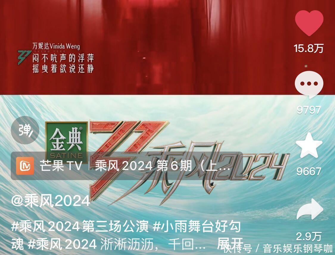 《乘风2024》三公播出之后皇冠陆放2023款,网友基本公认《小雨》舞台应该是第一,从节目官方的视频账号数据来看,小雨的点赞数目亦然最多的,荒谬其他舞台许多。